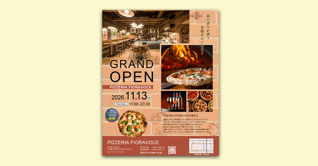 ピザショップ グランドオープン フライヤー(架空)