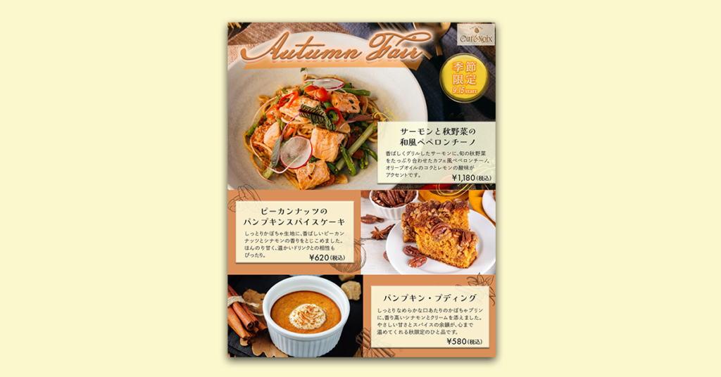 カフェ シーズンメニューフライヤー(架空)